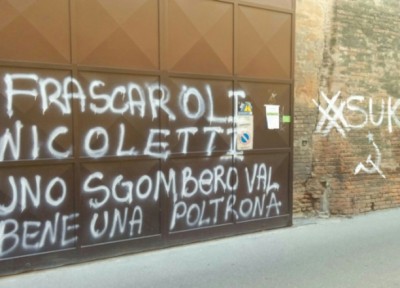 Santa Marta. Dopo l’inaugurazione scritte contro Frascaroli e Nicoletti