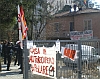 Nello stabile avevano trovato alloggio tre famiglie. Due sindacalisti di Asia Rdb sono andati sul tetto, ottenuto un incontro con l'ass. Malagoli. Tende davanti all'edificio sgomberato. -