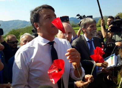 Renzi a Monte Sole. Fiori sulla tomba di Dossetti
