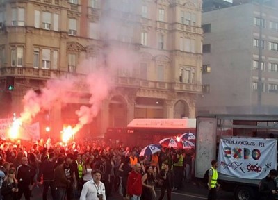 I collettivi bolognesi hanno sfilato per le vie del centro per protestare contro l'Expo di Milano -
