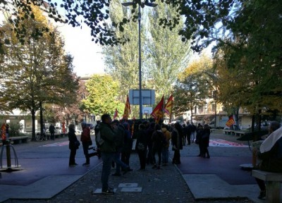 Lavoratori e studenti in corteo per lo sciopero generale proclamato dai sindacati autonomi Usb, Usi e Unicobas. Il collettivo Lubo occupa un'ex sede di Banca Etruria, subito sgomberata dalla polizia -