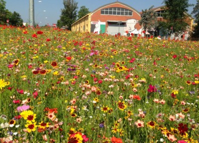 E' la rotonda Bubani, all'intersezione tra via Zanardi e via Marco Polo dove la ditta Arborea ha deciso di piantare un prato naturale, che muta con le stagioni. -