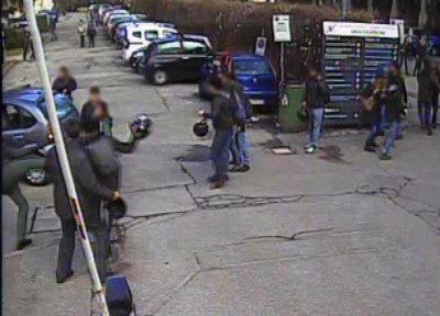 Undici i denunciati del collettivo Hobo, due quelli del Cua. Nelle immagini si vede il momento dell'attesa, quello dell'arrivo dell'auto del Cua che viene immediatamente assalita con calci agli... -