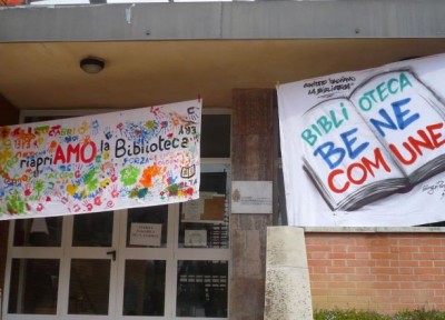 Sabato 1 giugno i lettori di Borgo Panigale manifestano per chiedere tempi certi di riapertura della sede inagibile per crepe. Consegneranno all'assessore Ronchi le 751 firme raccolte. -